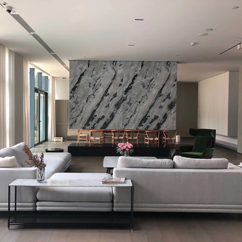 A:Capturing the mood of a stormy sea, this blue-gray quartzite boasts elegant, flowing veins for a modern, luxurious statement.
